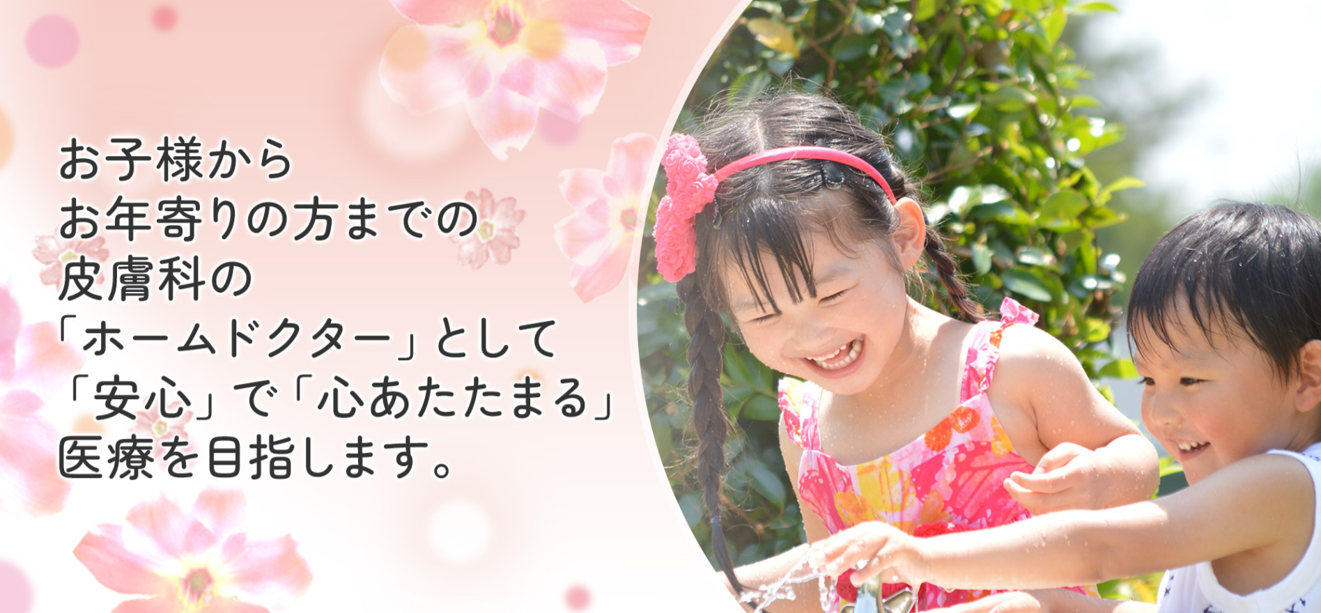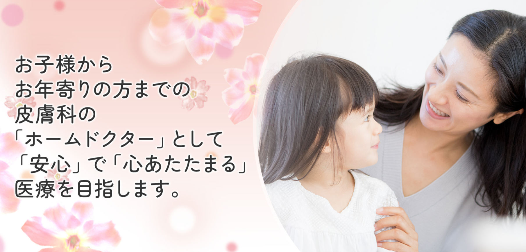お子様からお年寄りの方までの、皮膚科の「ホームドクター」として、「安心」で「心暖まる」医療を目指します。
